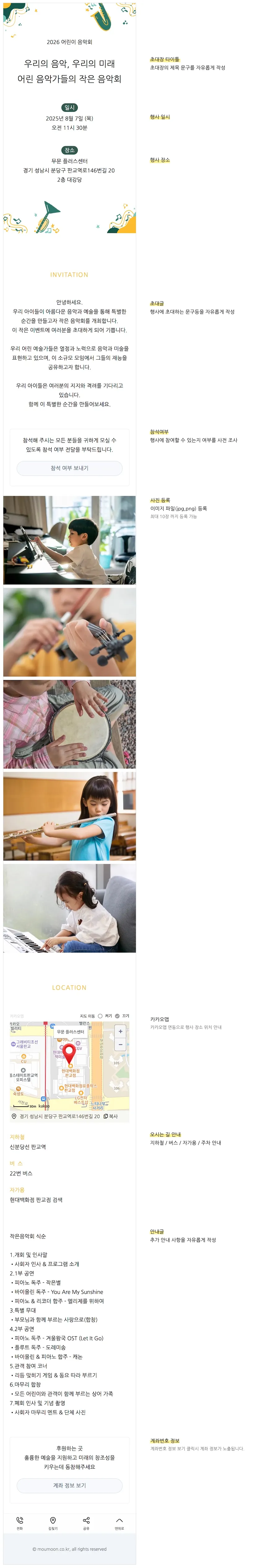셀프 만들기와 동시에 모바일 초대장이 실시간 자동 완성 됩니다.
