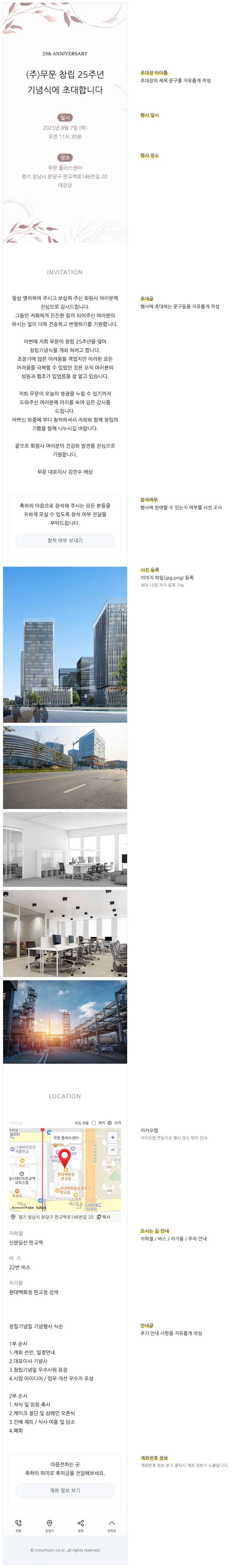 셀프 만들기와 동시에 모바일 초대장이 실시간 자동 완성 됩니다.