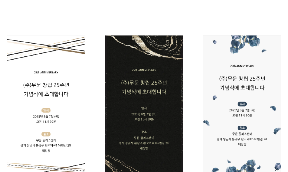 번거로운 개인 정보 입력 없이 즉시 초대장을 만들 수 있습니다.